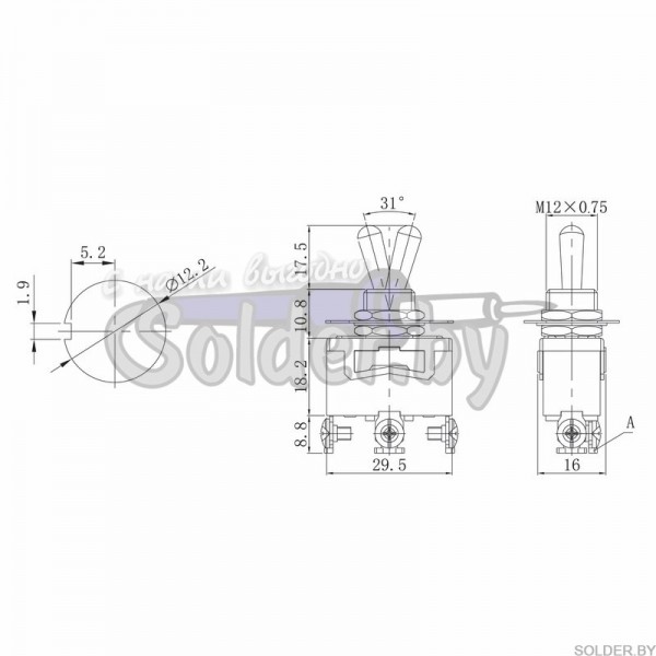 Тип переключения: ON-OFF-ON;