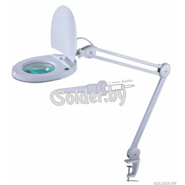 Лупа на струбцине круглая настольная 8Х с подсветкой с крышкой, белая EXANT