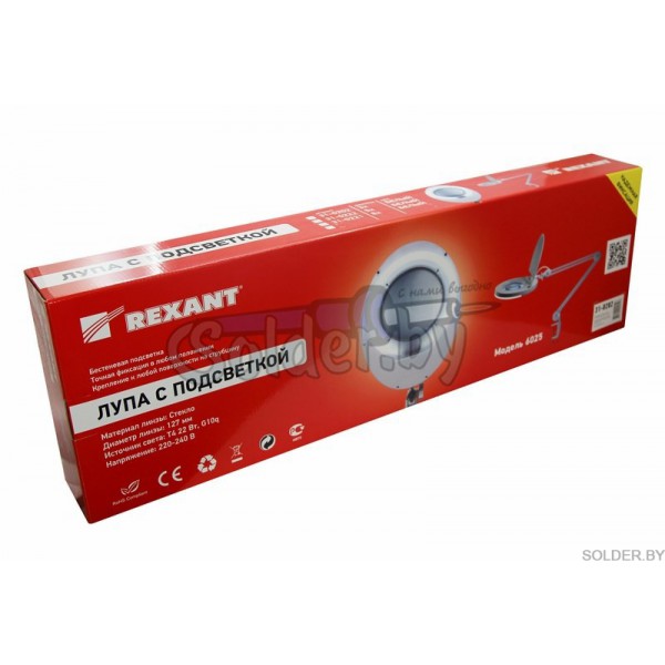 Лупа на струбцине круглая настольная 8Х с подсветкой с крышкой, белая REXANT арт. 31-0221