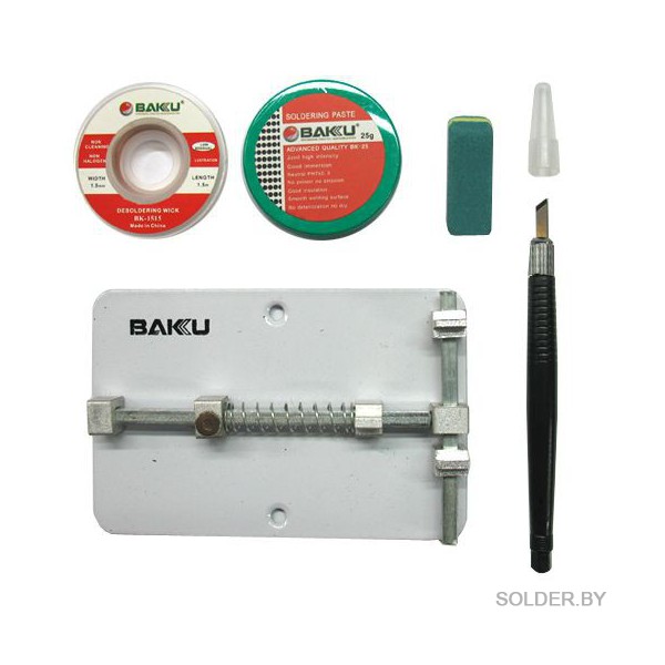 Зажим плат BAKU BK689B +паста+оплетка+нож+резинка арт.12-5122-9