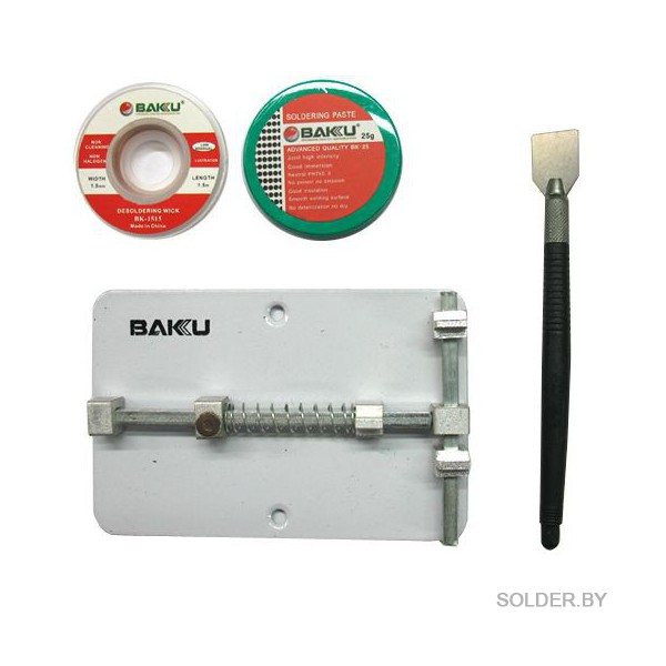 Зажим плат BAKU BK689D +паста+оплетка+шпатель арт.12-5124-9